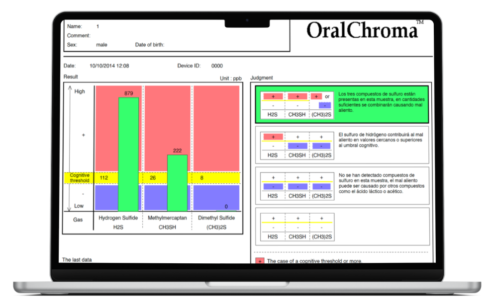 OralChroma es el equipo diseñado para proporcionar el diagnóstico etiológico de las enfermedades de la boca que producen Halitosis en unos minutos.